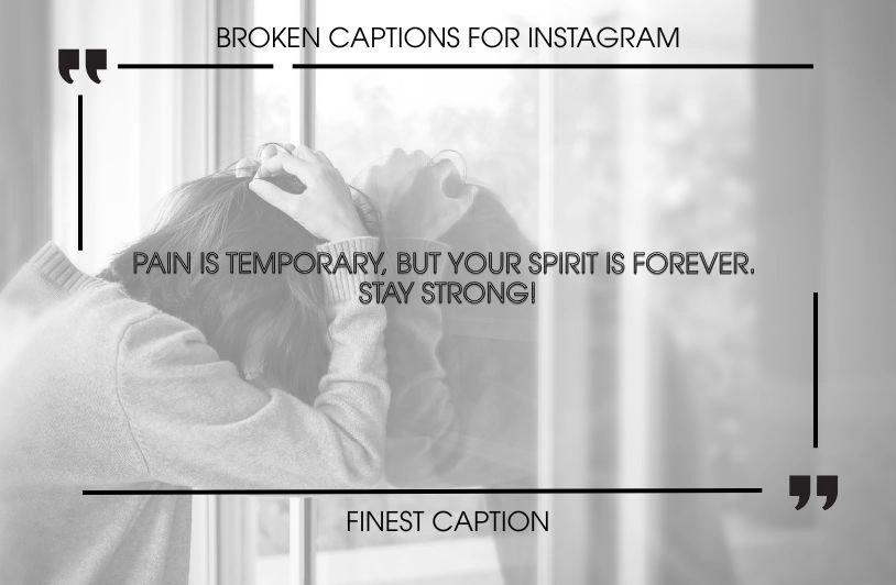 At Finest Caption, we understand that words have the power to heal and connect, especially when you’re going through tough times. With our wide range of broken captions for Instagram, you can express your deepest emotions and share your personal journey with others. Whether you’re feeling heartbroken or hopeful, our collection of broken captions for Instagram offers the perfect way to let your followers in on your feelings. Remember, each broken caption for Instagram you choose isn’t just a phrase—it’s a part of your story and a testament to your strength.